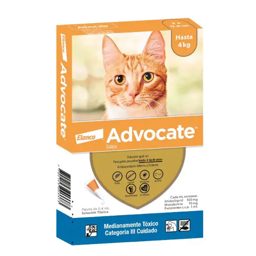 - Advocate® 0,4 mL para gatos pequeños hasta 4 Kg de peso.