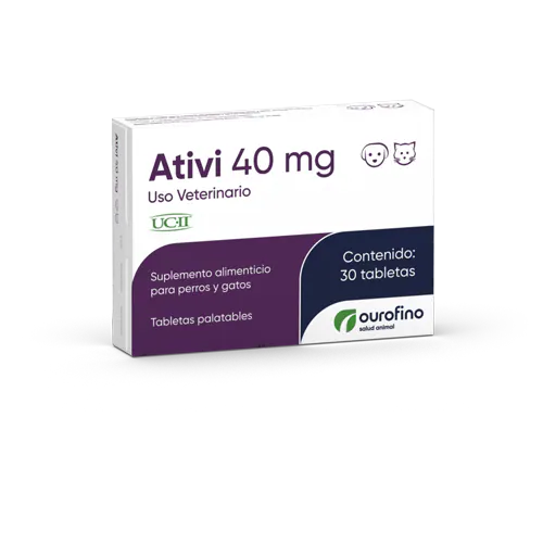 Ativi administrar un comprimido de Ativi 40mg al día, no importa el peso del animal. Por tratarse de una tableta palatable, se puede administrarla directamente al animal, así que no hay necesidad de mezclar con otros alimentos. No hay un periodo de uso mínimo o máximo, así que queda a criterio del médico veterinario definir el tiempo de uso del producto. Sin embargo, estudios indican que los beneficios de la suplementación de los componentes de este producto se observan con el uso en largo plazo, así que se sugiere el uso por un mínimo de 60 días.