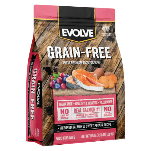 Evolve Grain-Free Salmon & Sweet Potato Recipe Dog Food es un alimento súper premium saludable y holístico que es ideal para perros con sensibilidades alimentarias, que a su vez promueve un sistema inmunológico saludable. La avanzada fórmula sin granos combinada con los ingredientes del salmón y la batata no solo saben muy bien para su mejor amigo, sino que proporcionan nutrientes esenciales que son necesarios para vivir una vida saludable. Elección de la receta Evolve Grain Free Salmon & Sweet Potato ¡La comida para perros es la clave para un futuro saludable y holístico para tu mejor amigo.